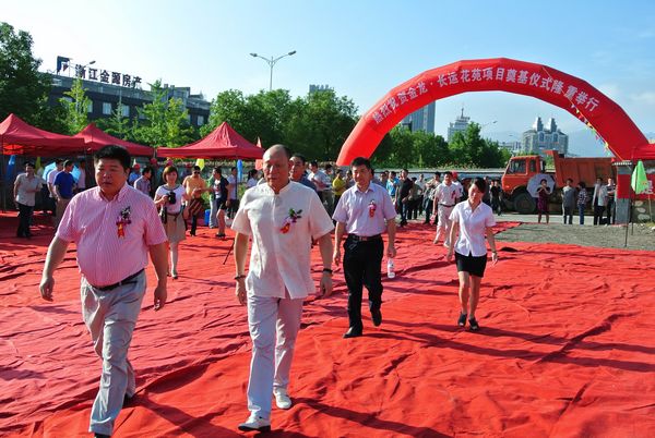 2012年8月26日上午,金龍.長運(yùn)花苑商住房項目舉行隆重開工奠基儀式。儀式現(xiàn)場,地毯披紅,人潮涌動,彩旗飄飄,音樂雄壯激昂,高空氣球和氣拱門更是增添了會場的熱烈。