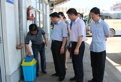 2013年7月10日上午,市交通運(yùn)輸局副局長(zhǎng)李根林一行蒞臨客運(yùn)西站檢查指導(dǎo)二季度創(chuàng)衛(wèi)工作整改情況。集團(tuán)公司總經(jīng)理薛和有陪同檢查。