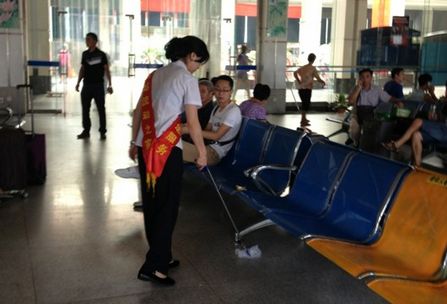 創(chuàng)衛(wèi)工作是當前西站各項工作中的重中之重,客運西站實行全站員工總動員,要求每位員工做到視線內(nèi)我就是保潔員,在確保完成本職工作的同時,全力以赴打好這場創(chuàng)衛(wèi)攻堅戰(zhàn),實行“客運工作與創(chuàng)衛(wèi)工作兩手抓,兩手都要硬?!?br/>    踏進站前廣場,你會看見保潔員拿著掃把、簸箕不停的巡視,及時的清理;買票時,你會時不時看見保衛(wèi)稽查人員拿著長柄鑷子在清理;候車時,推著服務(wù)車的西站服務(wù)班工作人員在為旅客提供服務(wù)的同時也拿著長柄鑷子清理地上的垃圾;上車時,你還會在發(fā)車區(qū)看見檢票員跟調(diào)度員在發(fā)車間隙拿著長柄鑷子及時清理正在上車的旅客丟下的垃圾。不遠處的場地上,是拿著鑷子和垃圾袋的值班站長的身影。