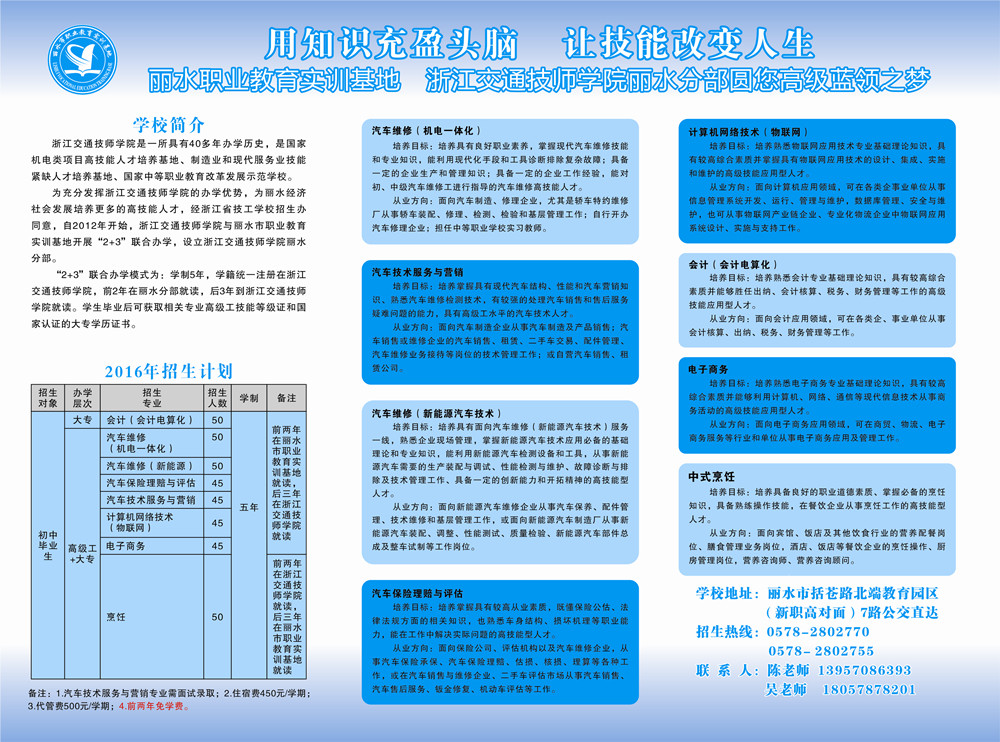 麗水教育實(shí)訓(xùn)基地 浙江交通技師學(xué)院麗水分部2016年招生計(jì)劃