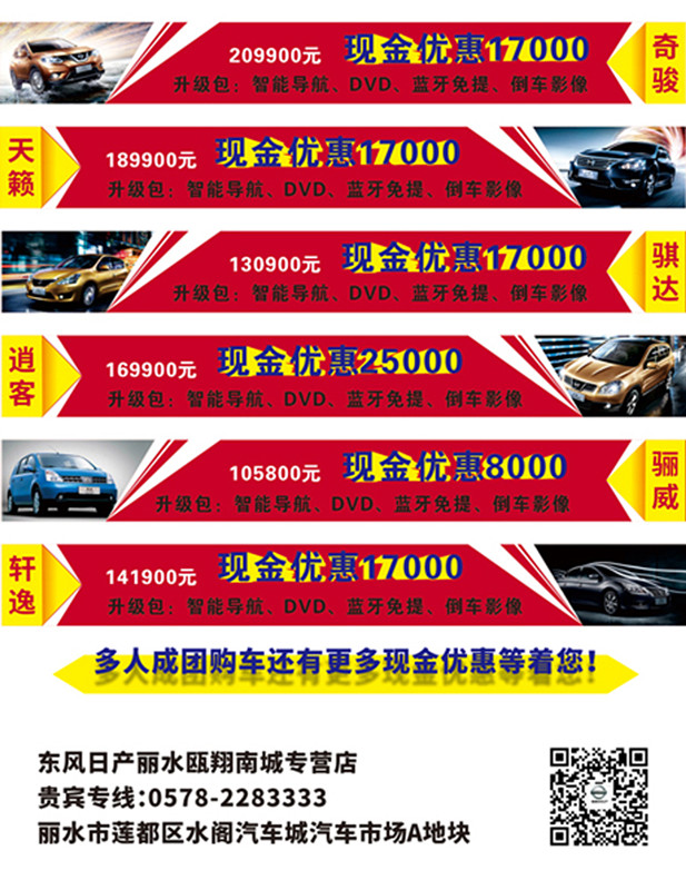 活動(dòng)時(shí)間、地點(diǎn):2015年5月23號(hào)13:30(周六) 東風(fēng)日產(chǎn)麗水甌翔店展廳