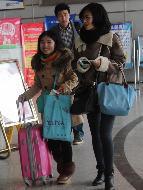 服務(wù)班的陳燕早早的推著服務(wù)車(chē)在候車(chē)室服務(wù),為春運(yùn)第一天踏上回家旅途的人們免費(fèi)送上一杯杯熱氣騰騰的開(kāi)水。陳燕說(shuō),為旅客服務(wù)是她的本職工作,農(nóng)民工兄弟們?cè)谕夤ぷ髁艘荒瓴呕匾惶思?,她和姐妹們要盡自己所能,為他們提供最優(yōu)質(zhì)的服務(wù)。服務(wù)班已備好了生姜茶,隨著氣溫的下降,姐妹們將會(huì)推車(chē)送姜茶服務(wù),為他們回家的途中送上一抹溫暖。