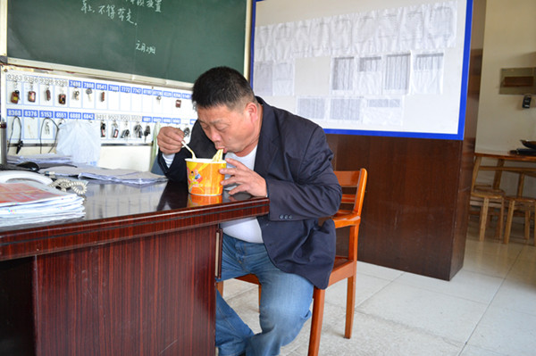 駕駛員休息室內(nèi),王金付正忙著準(zhǔn)備自己的午餐-一盒方便面,他是麗水至松陽班車的駕駛員,多年來,他自己也記不清楚有多少個(gè)除夕是在上班的了。