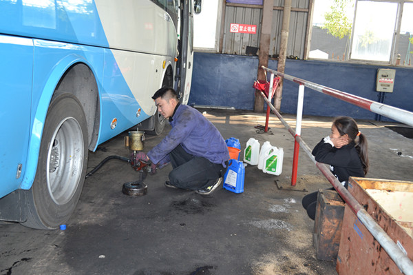 修理車間內(nèi),修理工管巧全正專心致志的為一輛車子加齒輪油,旁邊一位小姑娘翹首張望,我走了過去,“都這個(gè)點(diǎn)了,應(yīng)該都趕回家吃年夜飯了吧?”旁邊一位駕駛員滿臉歉意地說:“是啊,是我耽誤了小管的時(shí)間,本來是說好兩小時(shí)前到的,過來只是想碰碰運(yùn)氣,沒想到小管還在等我?!?“不急,我家就住在附近,你看,我女兒都來等我了,等你再開回龍泉,可趕不上年夜飯了?!惫芮扇f著,指了指一旁的小姑娘?!靶∨笥眩劝职职?,難等嗎?”看著聚精會(huì)神地蹲著的小姑娘,我問道?!澳棠毯蛬寢屢呀?jīng)做好飯了,可是爸爸說,等他把這些瓶子里的油一滴不剩地喂給這輛車子吃了,我們就能回家吃年夜飯了?!比缓螅斐鲋赡鄣男∈帧耙?、二、三……”地?cái)?shù)著地上的空瓶。