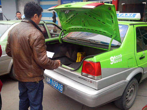長運出租車分公司的管理員正在進(jìn)行車輛技術(shù)狀況檢查