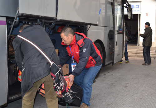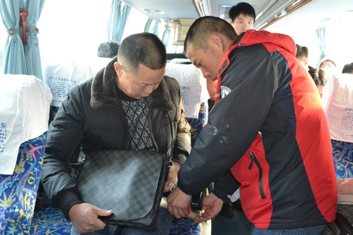 “加班到金華的駕駛員已經(jīng)報(bào)班!”1月17日13:00分,駕駛員曾國偉準(zhǔn)時(shí)來到車隊(duì)簽到,半個(gè)小時(shí)前,曾國偉還在親戚家喝喜酒,接到13:30要開加班車的任務(wù),他沒來的及等吃完飯就趕到了單位。同事問起來時(shí),他幽默地說:“春運(yùn)了,隨時(shí)都有加班任務(wù),哪敢隨意喝酒啊,這可是系著一車旅客的安全?!?br />說話的工夫,他來到班車上試了試燈光,檢查了機(jī)油和水位,試發(fā)一下發(fā)動(dòng)機(jī),隨后又敲了敲輪胎,各項(xiàng)正常。開車前,他拿起了茶杯,卻只是稍稍抿了一小口,出車前,不敢多喝水,生怕影響行車,這也是他多年的習(xí)慣。隨著一聲哨響,曾國偉駕駛的班車也緩緩地駛出了客運(yùn)西站。