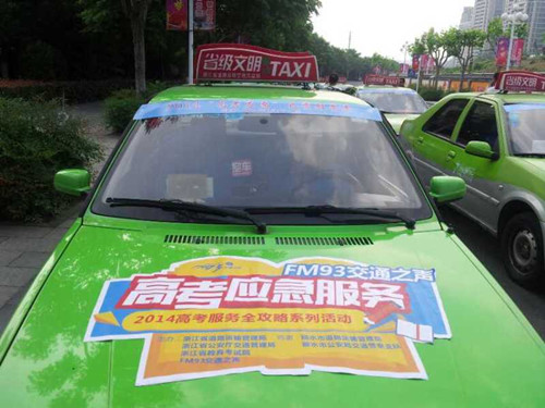 2014年,是我市出租車行業(yè)開展服務(wù)高考志愿行動的第7年,與往年相比,今年的高考應(yīng)急服務(wù)措施更細致、更專業(yè)、更貼心。為了能為12年寒窗苦讀的學(xué)生做點貢獻,市區(qū)三家出租車公司三支省級文明出租車隊,共60輛“愛心肋考”車投入“服務(wù)高考志愿活動”。每輛“志愿助考”出租車的前、后擋風(fēng)玻璃粘貼統(tǒng)一的助考標識,考生均可憑“準考證”免費乘車到考點。在麗水中學(xué)和麗水二中兩大考點將分別安排應(yīng)急車在開考前1小時至開考后半小時定點為考生服務(wù),其余車輛則分布于市區(qū)各個路段提供便捷服務(wù)??紤]到路況現(xiàn)狀,為了不耽誤考生“一生中最重要”的考試,準備10輛應(yīng)急車輛。萬一遇到送考車輛發(fā)生拋錨故障,或者有突發(fā)事件影響送考的情況,應(yīng)急車將及時頂上,保證在第一時間內(nèi)把考生接送至指定考場。另外,我們還設(shè)立了服務(wù)預(yù)約電話,考生可提前撥打麗水市道路運輸管理局服務(wù)熱線“96520”或市區(qū)三家出租車公司電話,我們將及時安排點對點高考應(yīng)急服務(wù)。