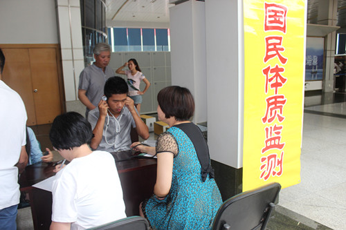7月3日上午,市國民體質(zhì)監(jiān)測中心工作人員走進(jìn)客運西站候車室,為車站的工作人員、司乘人員和過往的旅客開展國民體質(zhì)監(jiān)測活動,通過這樣的方式采集全市各類人群的體質(zhì)監(jiān)測數(shù)據(jù),為引導(dǎo)群眾科學(xué)開展全民健身活動提供科學(xué)數(shù)據(jù)。