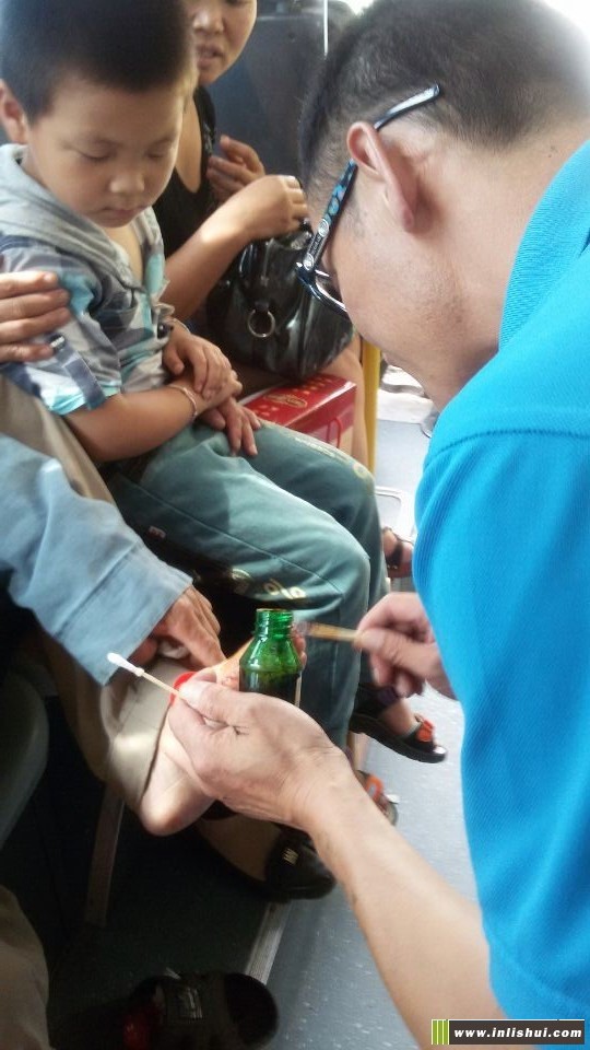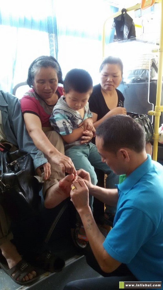 前天網(wǎng)友“鷹鷹”在論壇上發(fā)貼說:7月2日下午3點20分,我在中東路口站牌,乘301路公交車去鄉(xiāng)下老媽家。路上,由于旅客很多,一個大爺站在后門邊,不小心腳趾被門碰開一個口子,我們旅客不知道車上備有常用藥物,只知道給他餐巾紙以止血。公交車駕駛員得知有乘客傷了出血,馬上將車子??窟吷?,然后,從車上的急救箱里取出:碘酒、藥水棉花、創(chuàng)口貼等,因為老人是坐在座位上的,司機幾乎是跪在車廂地面,老人的腳也有些臟,但司機托著老人腳,細心的為大爺擦洗、消毒、包扎。他的行為,讓滿車的旅客齊贊他是一個好師傅。