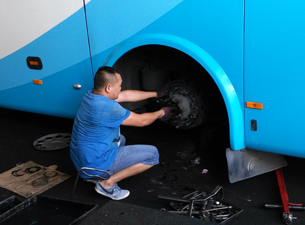 走進(jìn)車輛維修車間,一股熱浪迎面撲來,耳邊傳來輪胎拆裝機的轟鳴聲,眼前我們可以看見手拿各種工具的維修工人們忙碌的身影。他們有的在拆輪胎,有的在焊接,有的在拆裝螺帽,有的在清洗設(shè)備…灼眼的閃光,飛濺的火星,淺藍(lán)的煙霧,稍微有點嗆鼻的氣味,或蹲或站,左手緊握著防護(hù)罩,右手使著電焊槍,豆大的汗水順著臉頰流下來。廣大一線員工不畏高溫一如既往地堅守在各自崗位上,為企業(yè)的生產(chǎn)經(jīng)營付出了艱辛的汗水,為事業(yè)貢獻(xiàn)了力量。師傅們,你們真的辛苦了!