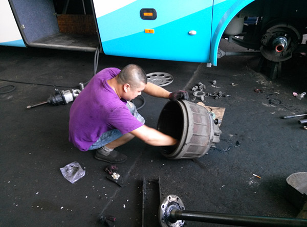 客長運(yùn)分公司維修車間,何軍海師傅正在緊張的修理汽車輪轂
