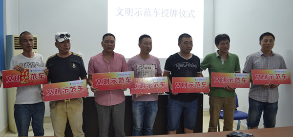 9月16日,快客分公司舉行了首季(6、7、8三月)“文明示范車(chē)”授牌儀式,為浙KA9010(杭州線(xiàn))、浙KA9018(杭州線(xiàn))、浙KA8901(杭州線(xiàn))、浙KA9386(吳斌班線(xiàn))、浙KA9396(吳斌班線(xiàn))、浙KA9503(松陽(yáng)線(xiàn))、浙KA9507(松陽(yáng)線(xiàn))、浙KA6691(龍泉線(xiàn))等8輛客車(chē)頒發(fā)了“文明示范車(chē)”標(biāo)志牌。