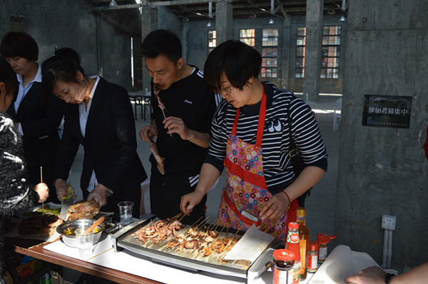 這次活動(dòng)提倡女工人人動(dòng)手,共同參與“煮”婦活動(dòng),包五彩餃子。早上9點(diǎn)不到,場(chǎng)地內(nèi)已異常熱鬧,按預(yù)定的分組形式,“煮”婦們齊動(dòng)手,和面、穿烤串、包餃子,很快顏色多樣、形狀各異的餃子也紛紛的在大家眼前呈現(xiàn),“你綠色的好看”、“你的餃子做的圓嘟嘟的真可愛(ài)”、“你教我怎么搟皮吧”、“這個(gè)餃子大的”…… 你到我組看一看,我到你組瞅一瞅,大家互相探討包餃子的技術(shù),互相嬉鬧,歡笑聲此起彼伏。