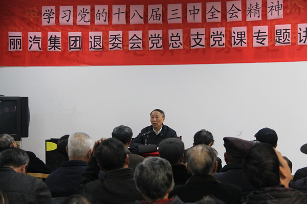 為把學(xué)習(xí)貫徹黨的十八屆三中全會精神引向深入, 11月28日麗汽集團離退委黨支部特邀請麗水黨??妈b清副教授給100余位黨員上了一堂以“學(xué)習(xí)十八屆三中全會精神”為主題的黨課,從中國的形勢、會議內(nèi)容,行政體制改革和轉(zhuǎn)變政府職能等方面進行宣講,進一步深化了離退休黨員對全會精神的理解。