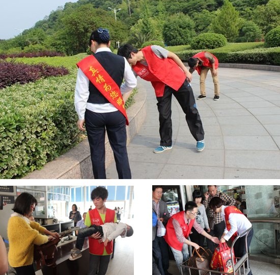 在西站候車大廳內(nèi)因為有這樣一群身穿“紅馬甲”的志愿者變得格外溫馨。他們有的穿梭于人潮中,指引旅客在哪個檢票口檢票;有的為旅客送開水;有的引導旅客安檢、幫忙旅客提行李;有的帶著鉗子、塑料袋清撿站前廣場上的白色垃圾、清鏟地面口香糖;有的在候車室勸導不文明行為,例如吸煙、隨地亂丟垃圾等。在西站工作人員和志愿者的辛勤付出,讓繁忙的車站客流、車流秩序井然.