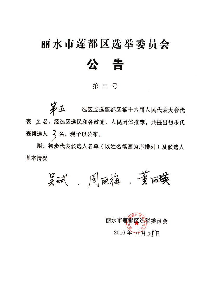 麗水市蓮都區(qū)選舉委員會公告( 第二號 )