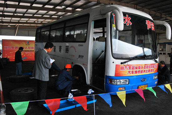 11月13日上午9點(diǎn)整,汽車維修技術(shù)比賽在快客分公司修理車間舉行,快客分公司修理車間和客長運(yùn)分公司修理車間各派出4名選手,選手根據(jù)抽簽,完成前橋、后橋作業(yè)??炜头止纠罱ú?、客長運(yùn)分公司武賢強(qiáng)、快客分公司管巧全分獲前三名。