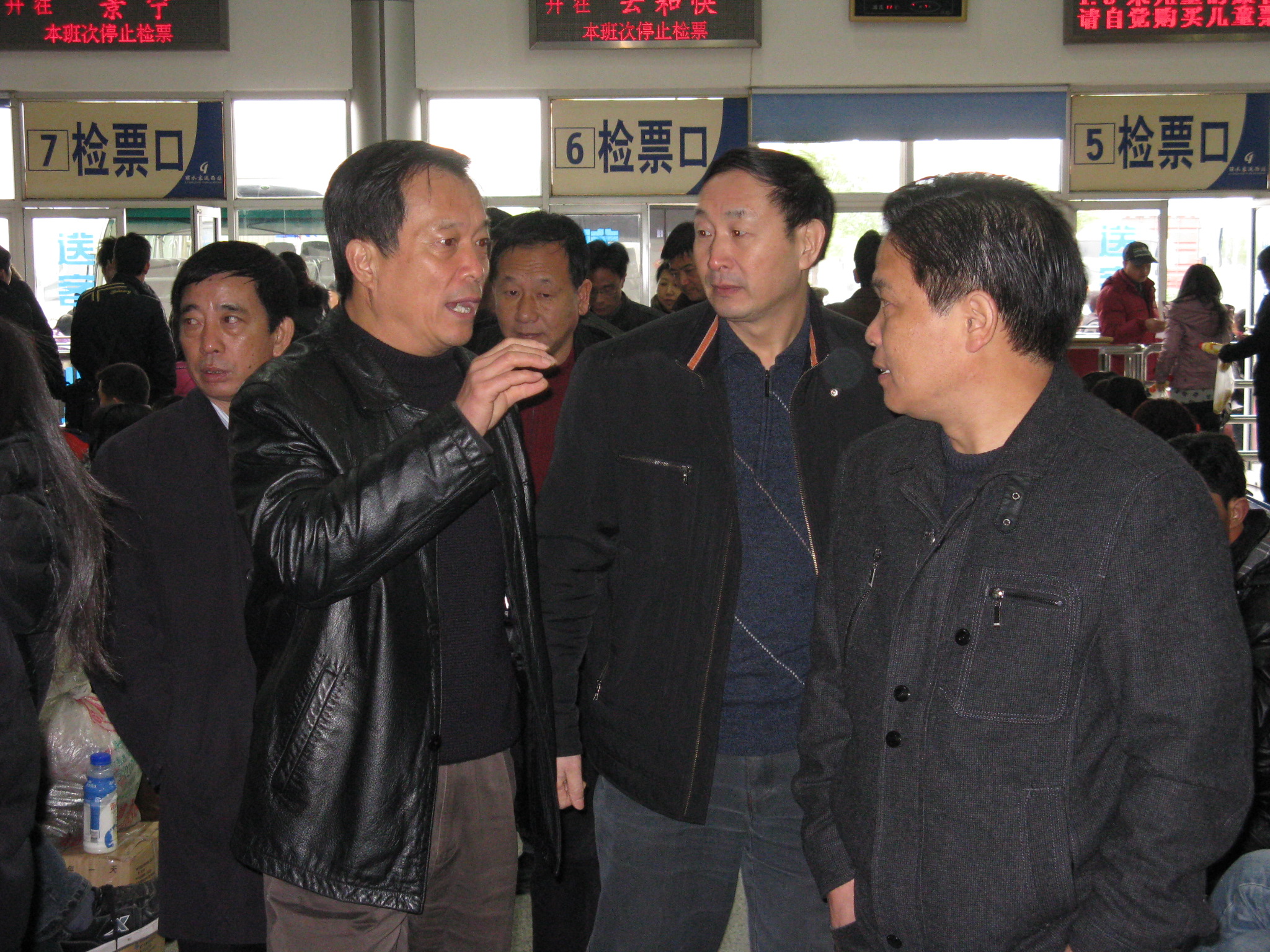 在春運(yùn)運(yùn)力調(diào)配中心,崔建宏局長(zhǎng)詳細(xì)了解了集團(tuán)公司在人員值班、運(yùn)力安排、安全生產(chǎn)方面的工作。在進(jìn)站危檢崗位前,崔局長(zhǎng)還親切地握住了堅(jiān)守崗位的運(yùn)管和西站保衛(wèi)人員的手,向他們送上了新年的祝福,并交代危檢員,一定要做好工作,確保春運(yùn)期間旅客安全。檢查期間,崔建宏局長(zhǎng)要求集團(tuán)公司以及全體運(yùn)輸、站務(wù)工作人員繼續(xù)保持良好的工作狀態(tài),切實(shí)做好安全和服務(wù),讓旅客平安、快捷地回家過(guò)年。