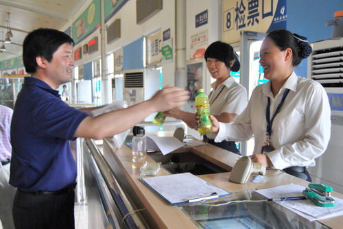 為做好夏季防暑降溫工作,今年集團(tuán)公司除發(fā)放清涼飲料費(fèi)外、還在給全體在崗員工每人發(fā)放了五豐冷食冷飲票。在做好員工的防暑降溫工作的同時(shí),集團(tuán)公司客運(yùn)東、西站候車廳所有空調(diào)全部啟用,客運(yùn)東站還打開(kāi)吊扇,確保室內(nèi)空氣的流通,為旅客營(yíng)造了舒適、清涼的候車環(huán)境,"流動(dòng)之家"服務(wù)班還在原來(lái)送茶水的基礎(chǔ)上,增添了送涼茶(金銀花茶)服務(wù)項(xiàng)目,受到旅客的好評(píng)。