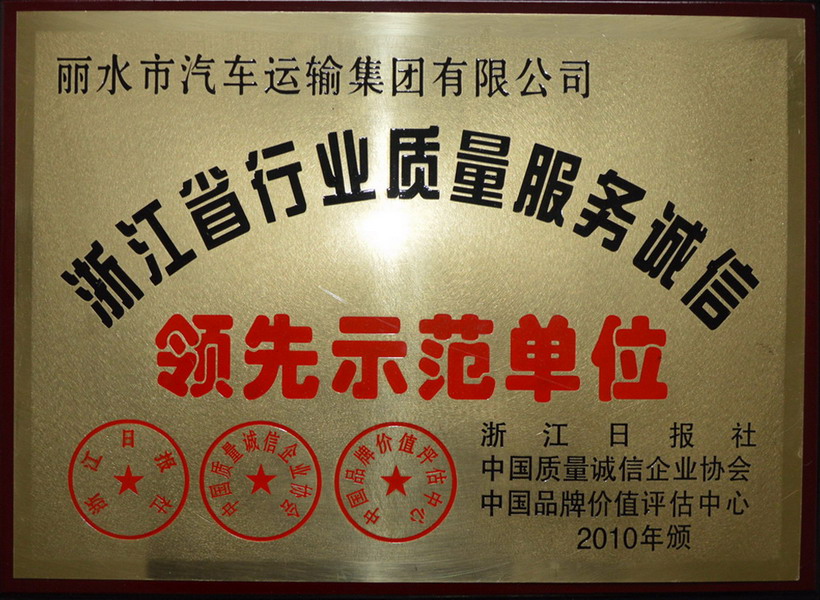 浙江省行業(yè)質(zhì)量服務誠信領先示范單位