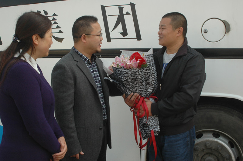 章雙林師傅接過鮮花,很靦腆的笑著說:“這沒什么,也是我的責(zé)任?!?/p>