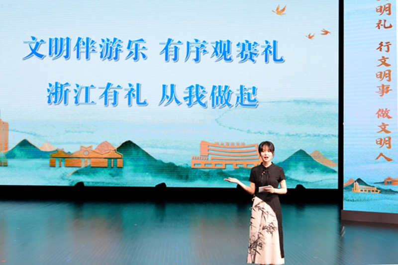 學(xué)禮儀《浙風(fēng)十禮 樂有禮》,采用與觀眾互動(dòng)的形式,倡導(dǎo)在座的每一位都從自身做起,從細(xì)節(jié)做起,爭做一個(gè)明禮、守禮、用禮的人!真正讓“浙江有禮,從我做起”成為我們?nèi)竦男袆?dòng)自覺。
