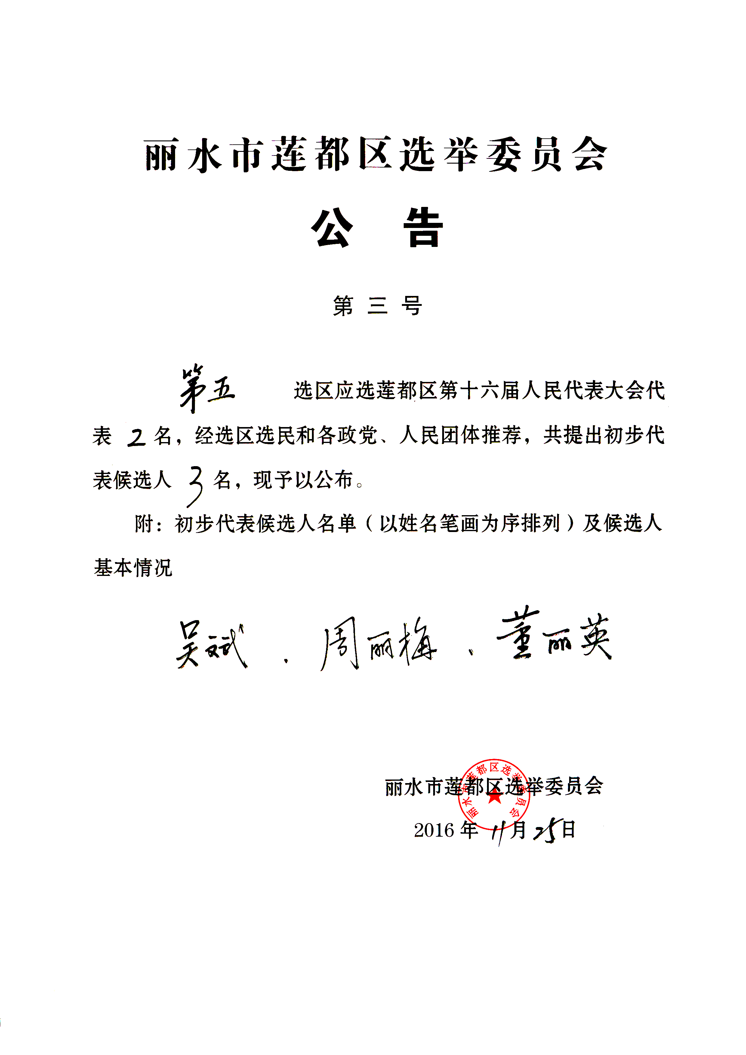麗水市蓮都區(qū)選舉委員會公告( 第二號 )